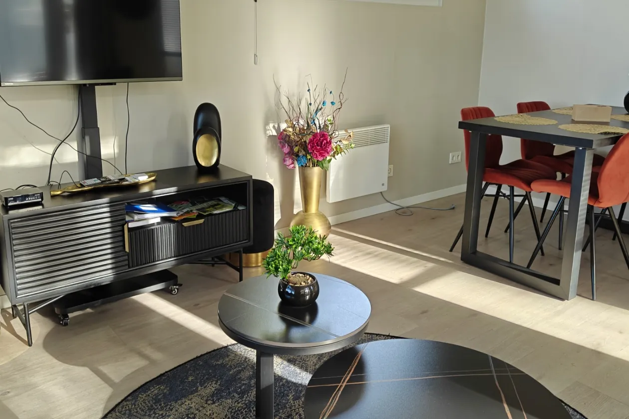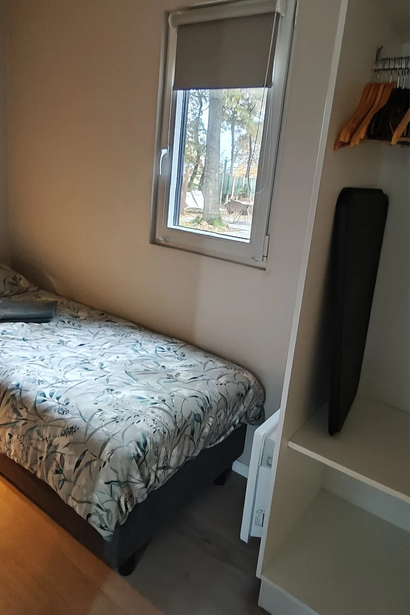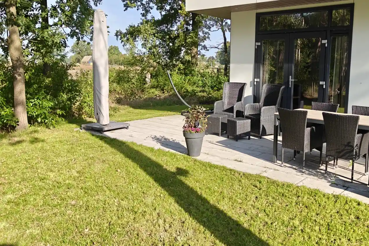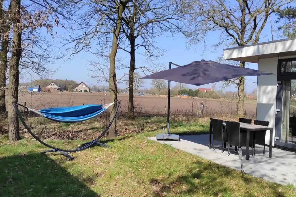 Binnen vind je een gezellige woonkamer, een compleet uitgeruste keuken, twee comfortabele slaapkamers en een moderne badkamer. Buiten geniet je van een ruim terras met uitzicht op het bos, waar je heerlijk kunt ontspannen met het geluid van de vogels op de achtergrond.